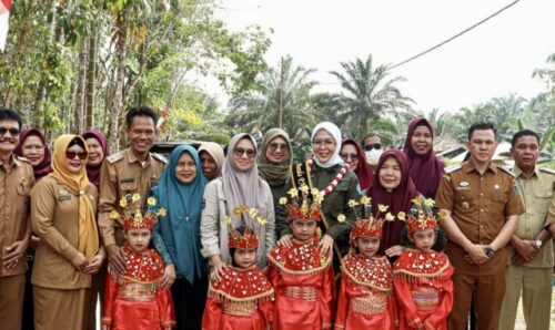 derapjambi.co_batanghari – Zulva Fadhil selaku Bunda PAUD sekaligus Ketua Tim Penggerak PKK Kabupaten Batang Hari menghadiri Peluncuran Program Makan Bergizi Gratis (MBG) di Desa Pematang Gadung, Kecamatan Mersam, Batang Hari, Selasa (29/07).