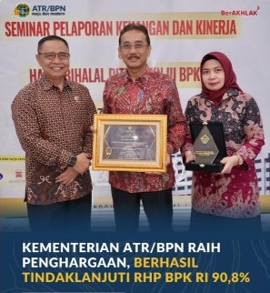 derapjambi.co_sarolangun – Kementerian Agraria dan Tata Ruang/Badan Pertanahan Nasional (ATR/BPN) melaksanakan Tindak Lanjut Rekomendasi Hasil Pemeriksaan (TLRHP) dari Badan Pemeriksa Keuangan (BPK). Dari hasil tersebut, Kementerian ATR/BPN telah menyelesaikan 90,8% temuan yang berbuah apresiasi berupa penghargaan dari BPK.