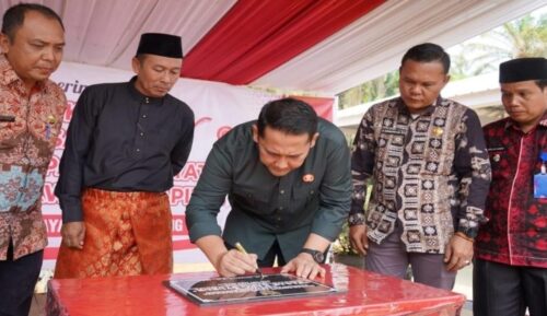 derapjambi.co_merangin – Pasar di Desa Plakar Jaya Kecamatan Pamenang, yang diusulkan H M Syukur semasa menjabat sebagai anggota Dewan Perwakilan Daerah Republik Indonesia (DPD RI), diresmikan Bupati Merangin H M Syukur, Kamis (28/08).